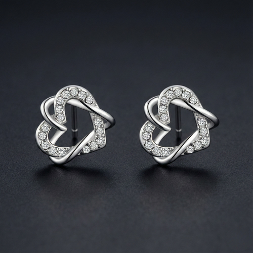 Twin Heart 925 Silver Diamond Stud Earrings with Lab-Grown Diamonds
